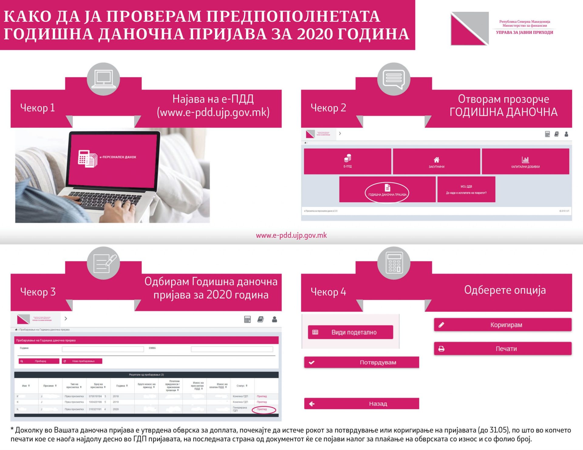 ИнформацииПотврдете ја или коригирајте ја годишната даночна пријава (ДЛД-ГДП) за 2020 година најдоцна до 31 мај 2021 година