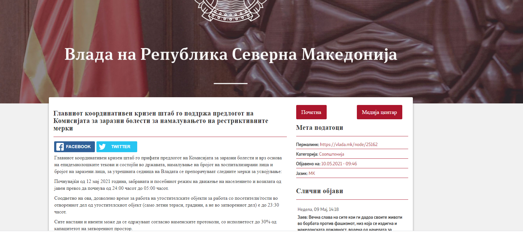 ИнформацииПРЕДЛОЖЕНИ СЕ НОВИ МЕРКИ ЗА КОИ ВЛАДАТА ЌЕ ОДЛУЧУВА УТРЕ, А КОИ ТРЕБА ДА СЕ ПРИМЕНУВААТ ОД 12 МАЈ 2021 ГОДИНА
